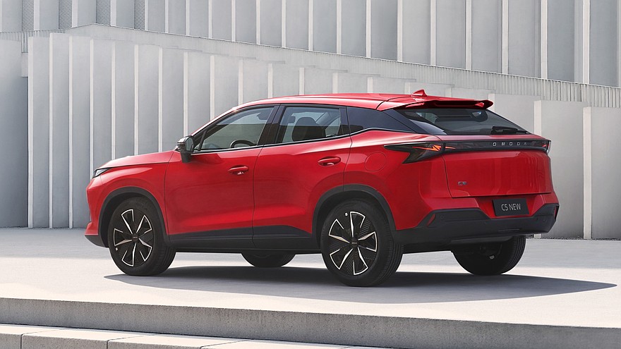 Автомобиль на снимках имеет двухцветные колёсные диски, традиционные наружные зеркала с чёрными корпусами, а также обычные дверные ручки, окрашенные в цвет кузова. На корме Omoda C5 останется прежний спойлер, установленный в верхней части багажной двери, а также «монофонарь» той же формы, однако у него, очевидно, будет иной световой рисунок – в виде молнии (оформление сходе с Omoda C7). Ещё у новинки иначе оформлена нижняя часть заднего бампера.